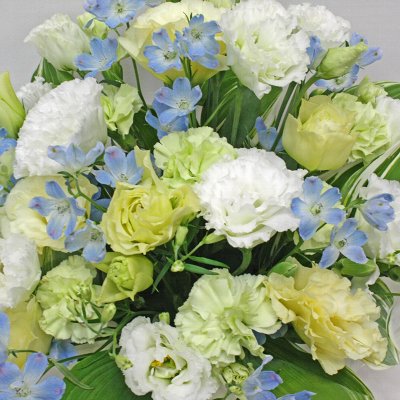 トルコキキョウ使った淡い感じのお供え用のアレンジ