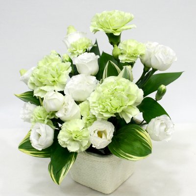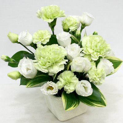 ・商品名 グリーンのカーネーションのお供えアレンジメント