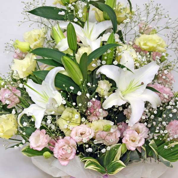 花材: メイン ユリ・トルコキキョウ その他 カスミ草