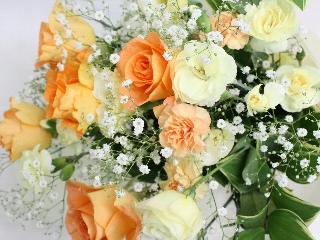 花材:メイン バラ・トルコキキョウ その他 カーネーション・かすみ草