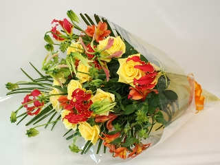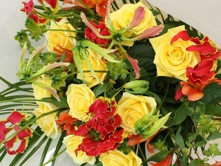 花材:メイン バラ・グロリオサ その他 季節のお花